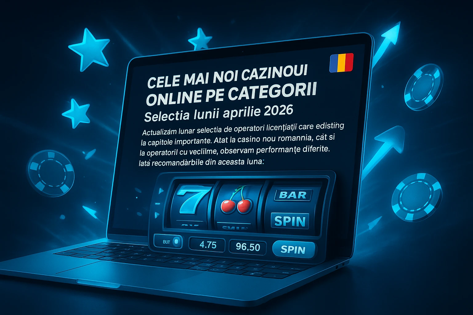 Am revizuit complet lista de cazinouri online noi din România pentru aprilie 2026. Fiecare casino nou romania a fost testat practic – de la activarea bonusului până la retragerea câștigurilor. Găsești aici doar operatori cu licență ONJN și condiții de casino online romania nou verificate pe deplin.